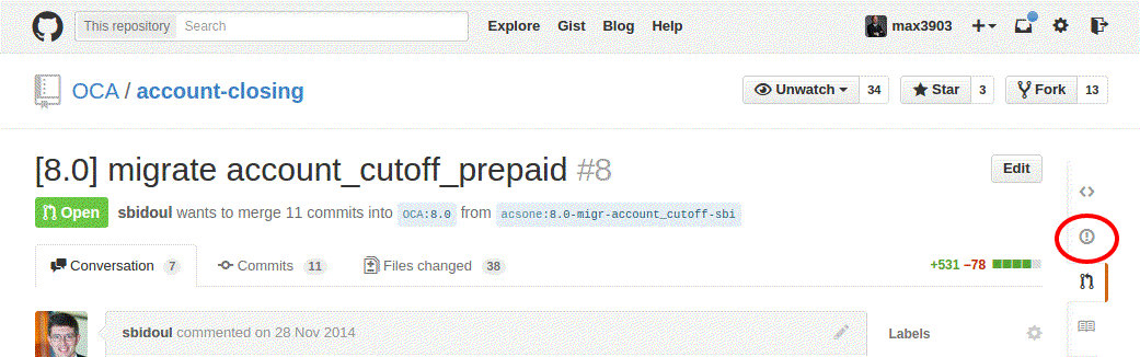 • Report Runbot errors by creating a new issue on the same project as the pull request: