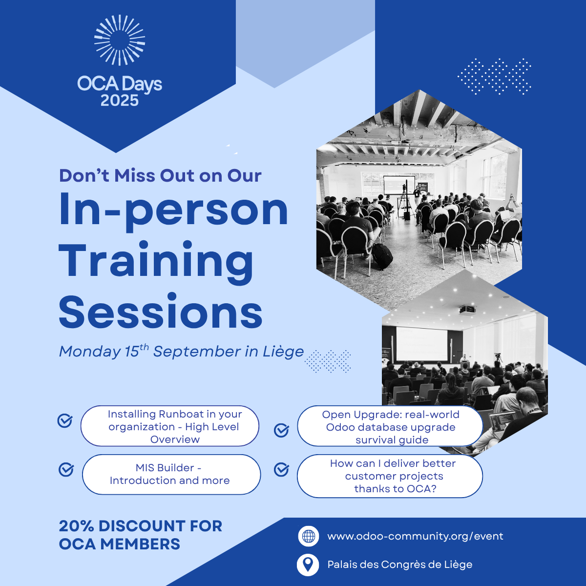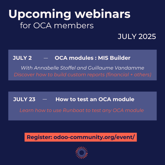 We have two in July - OCA modules: MIS Builder and How to test an OCA Module.
