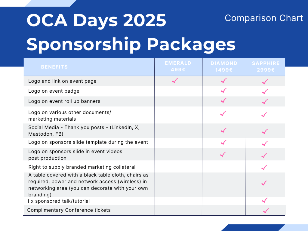 We have great sponsorship opportunities available for our OCA supporters at the OCA Days 2025!