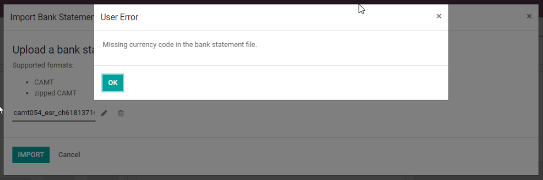 I have the following problem when uploading a camt54 file.