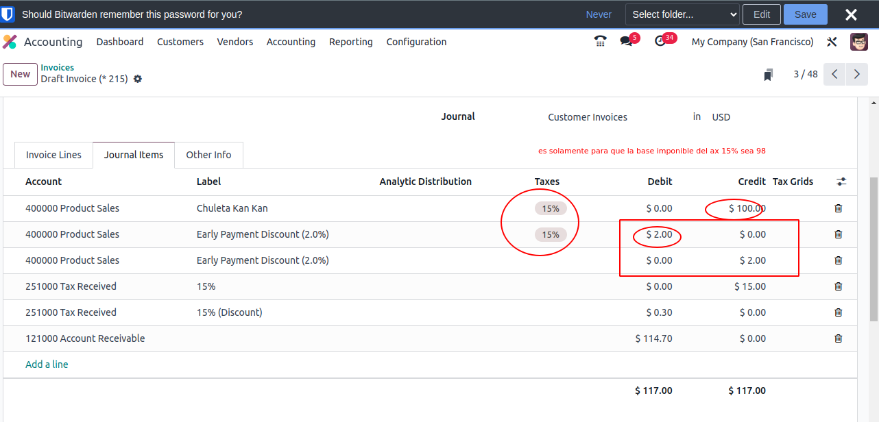 - On master (and I believe 16 two). Odoo has a similar use case for belgium. When you offer a cash discount, no matter if the customer use it or not, the vat is computed on the discounted price. That's why there is a new option on the payment terms and, only for having the right base amount on the invoice, odoo is creating virtual lines (check attachment)