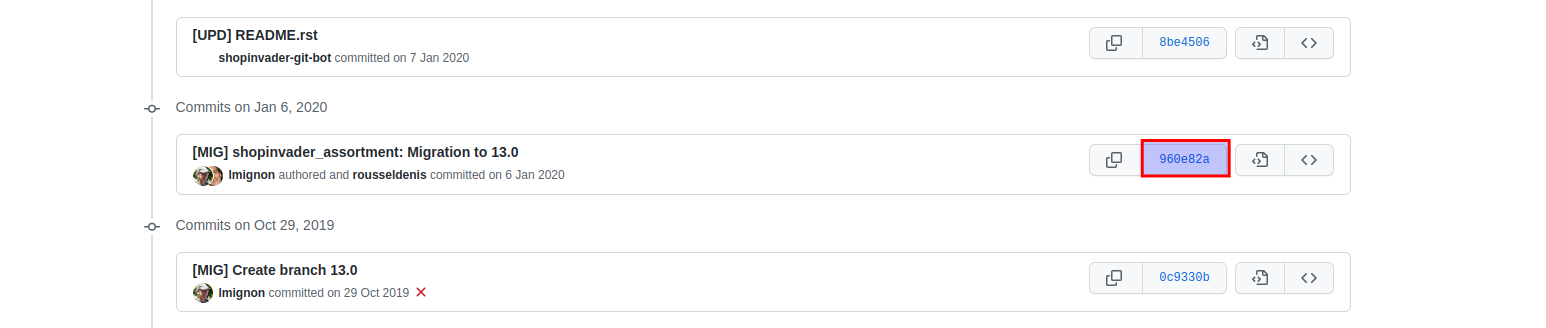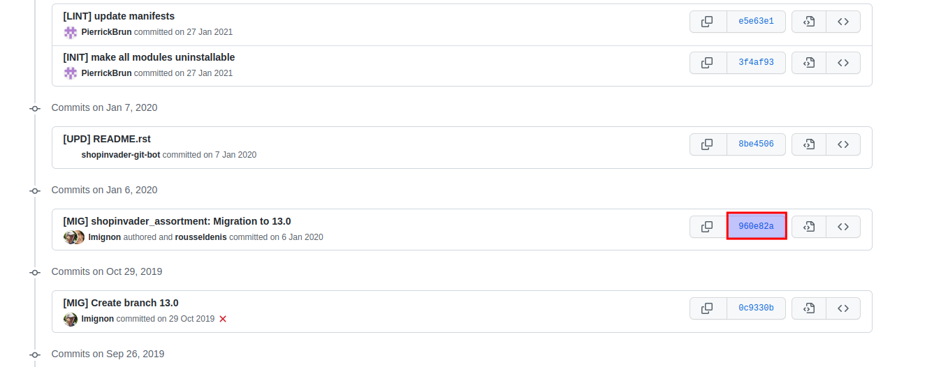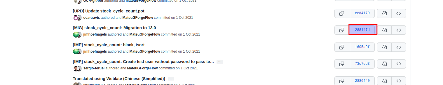 You're wrong on this as this is the case currently (different SHA). Example with stock_cycle_count module:When basing the new main branch on preceding one:- Derived from this, it requires that the reviewers alw ays need to check if the migration pull request contains the latest commits.