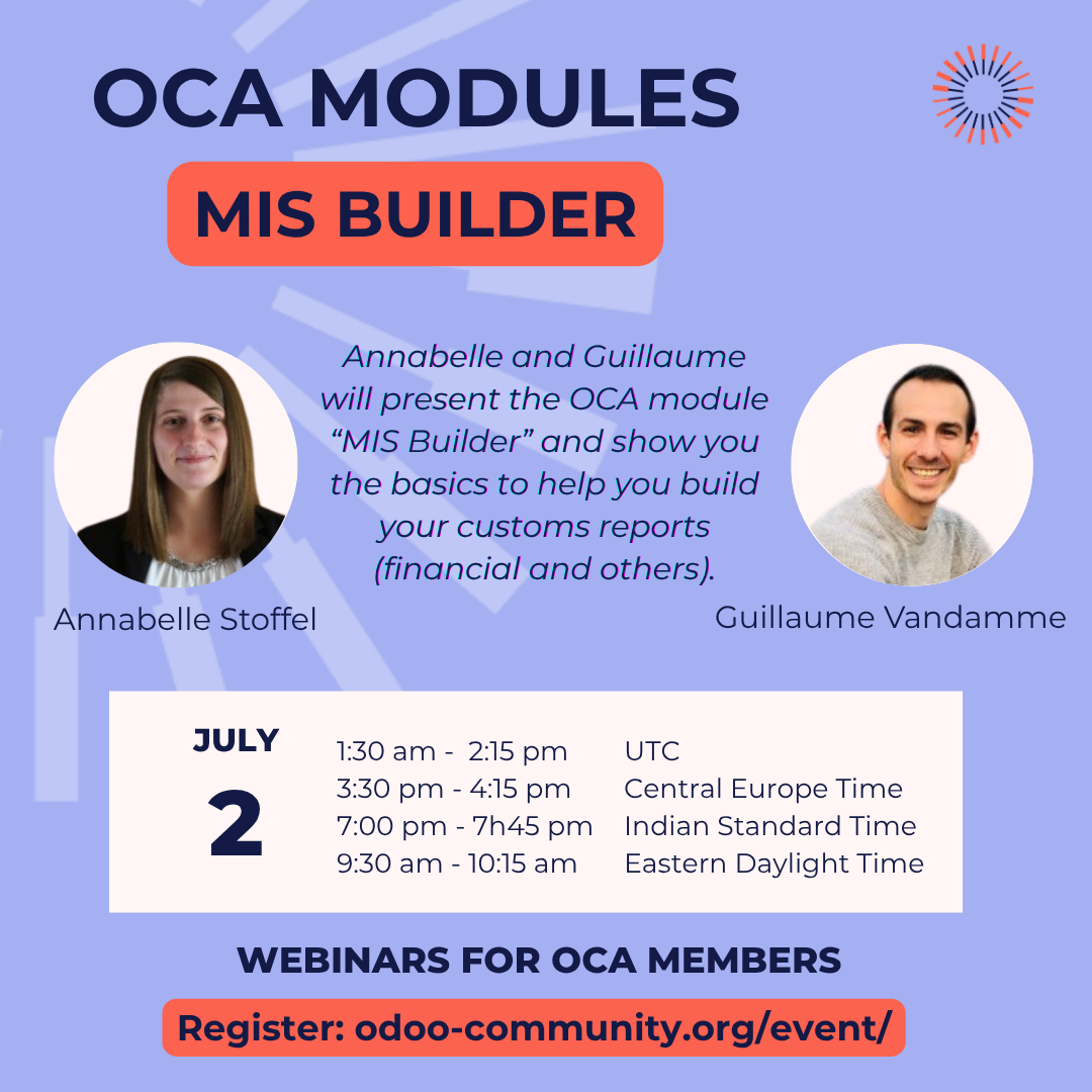 You can register here : https://odoo-community.org/event/webinar-oca-modules-mis-builder-2025-07-02-177/register_______________________________________________