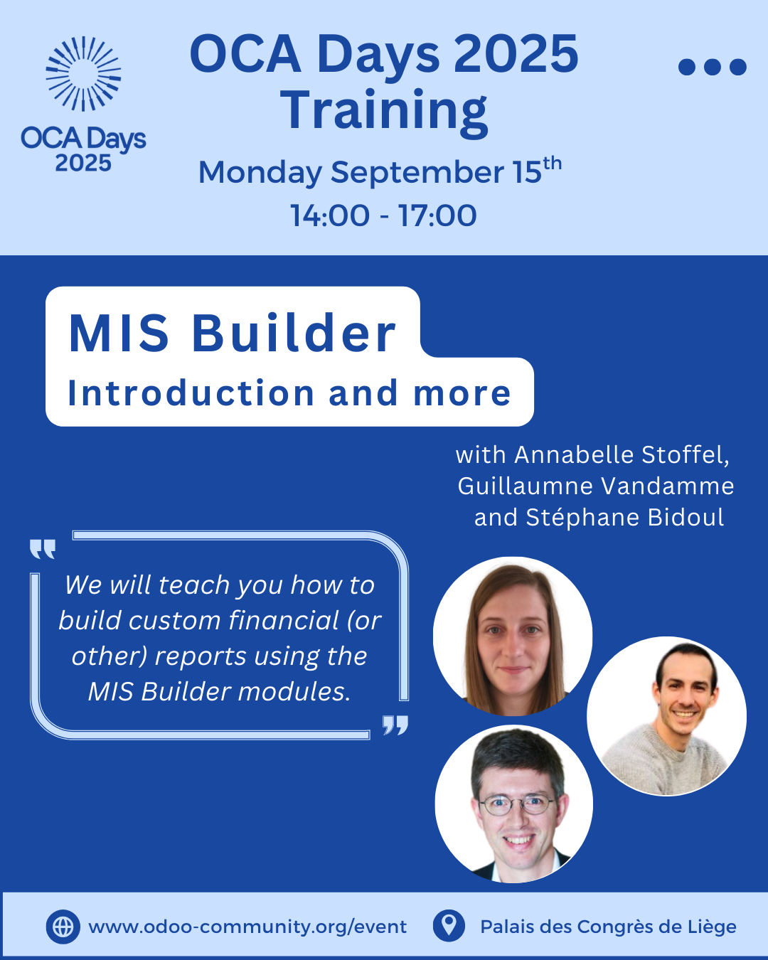 Registration : https://odoo-community.org/event/oca-days-2025-liege-2025-09-15-2025-09-17-174/register